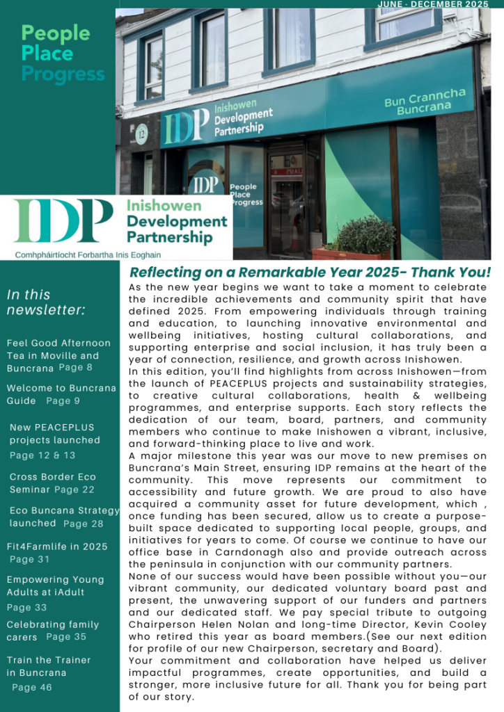 An innovative community leader for Inishowen – empowering its people, promoting our place, and advocating for progress.