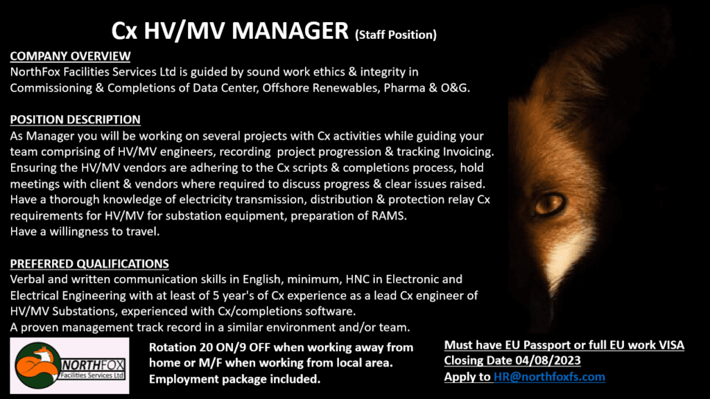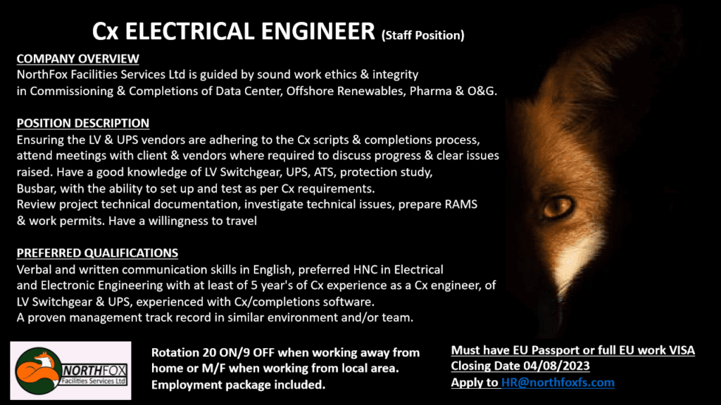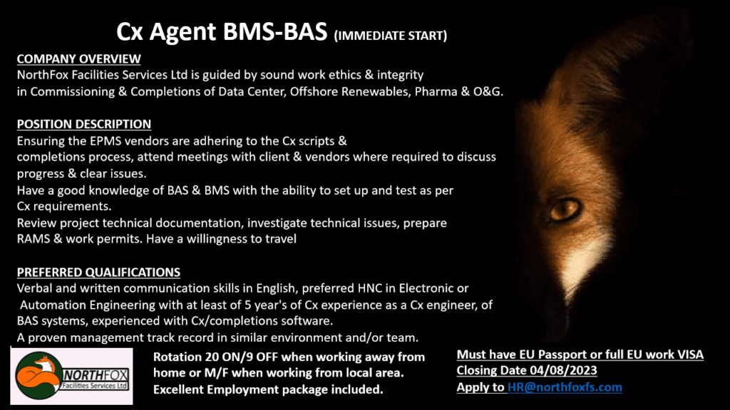 in Commissioning & Completions of Data Center, Offshore Renewables, Pharma & O&G.