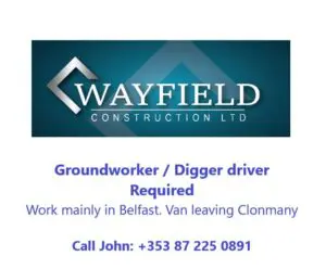 Inishowen company Wayfield Construction are currently hiring ground workers and digger drivers to work for them in Belfast.