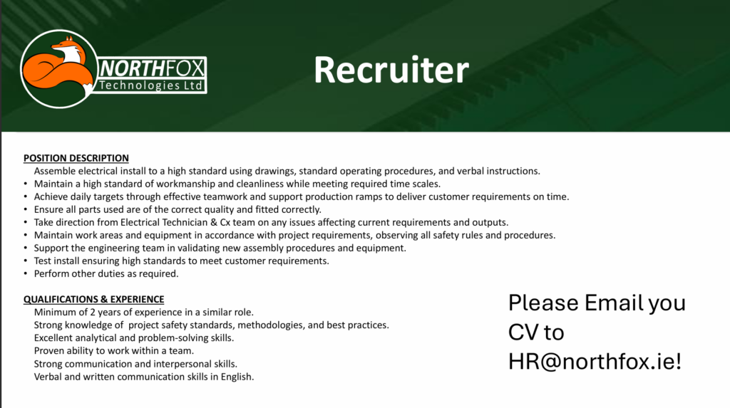 Northfox Technologies Ltd is Hiring! They’re seeking a Recruiter to join their team.