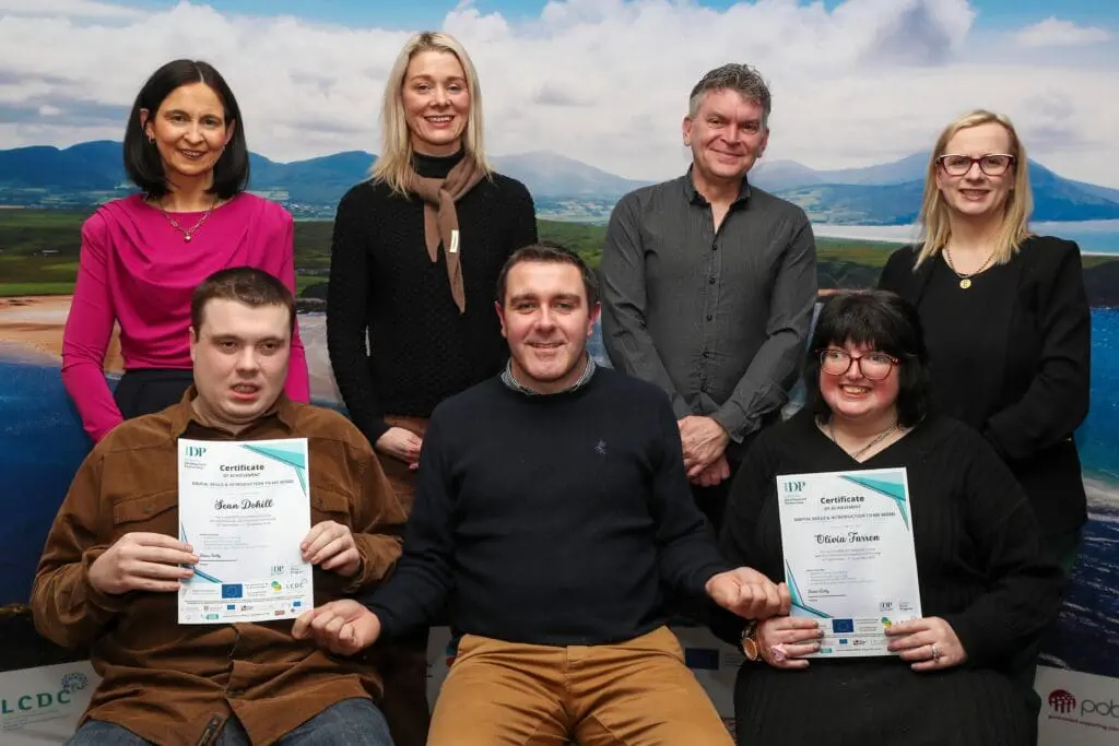 Among those celebrated was Olivia Farren who completed the employability training with IDP employment support officers Paddi McMonagle and Emily Graham.