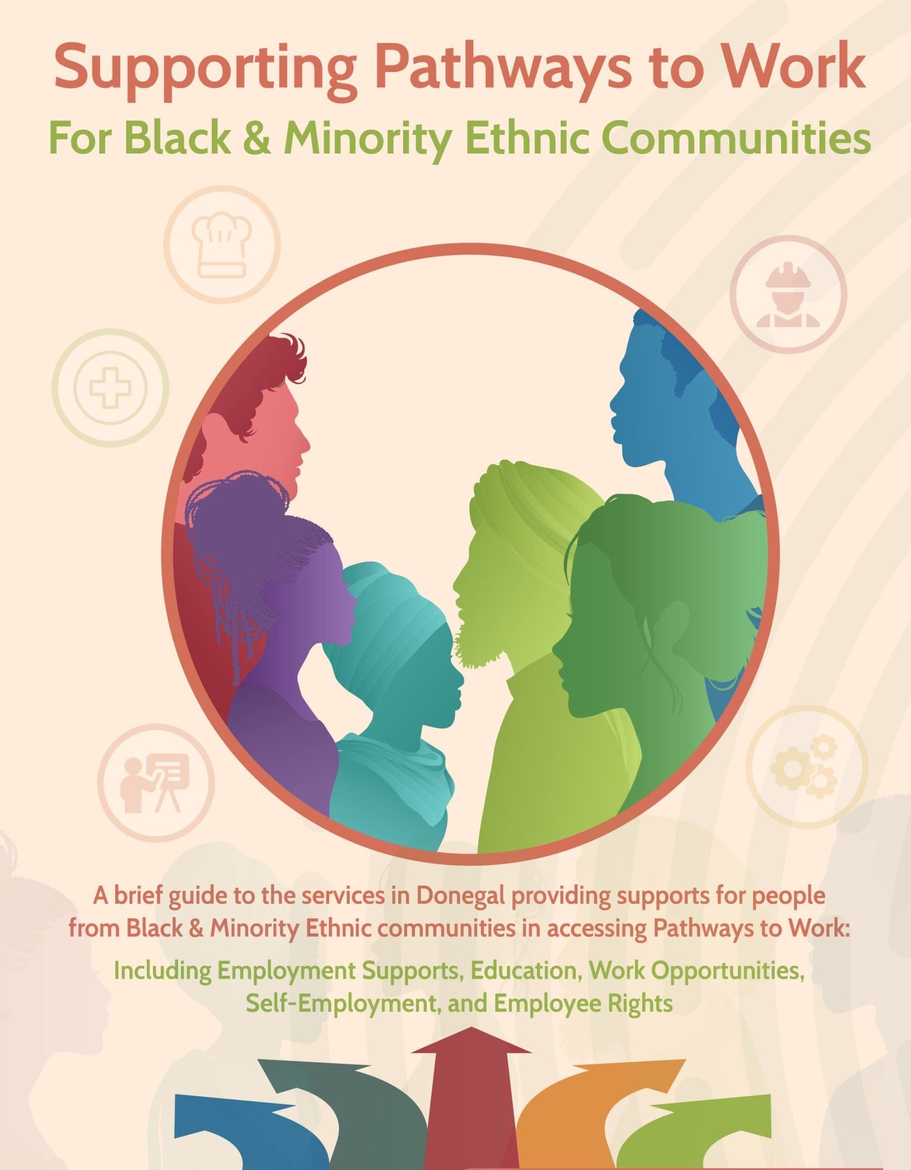 The guide below was developed by the BME Supporting Pathways to Work subgroup – an initiative of the Black & Minority Ethnic Inclusion Strategy for Donegal 2021-2026. It is a brief guide to the services in Donegal providing supports for people from Black & Minority Ethnic communities in accessing Pathways to Work, including Employment Supports, Education, Work Opportunities, Self-Employment, and Employee Rights.